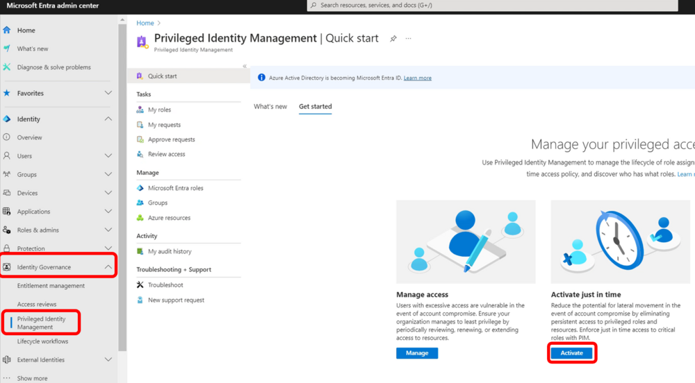 Next, navigate to Entra > ID Governance > Privileged Identity Management > then Manage Microsoft Entra roles